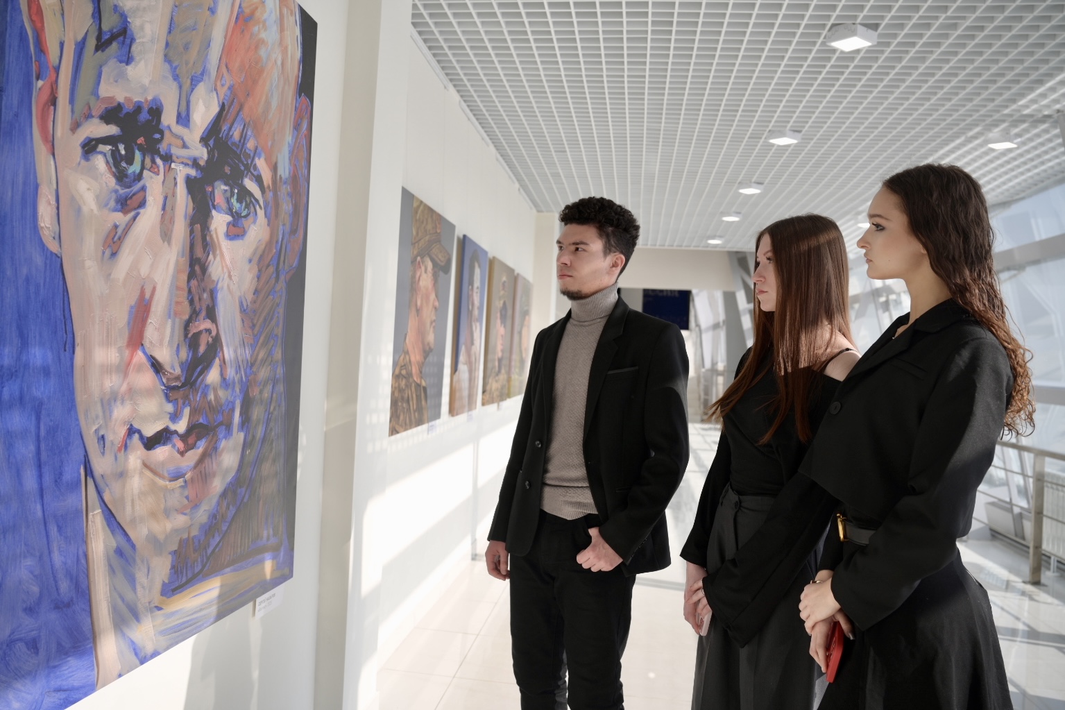 На выставке представлены масштабные фотокопии живописных портретов военнослужащих, созданных в рамках мероприятий культурно-просветительского проекта «СВОя флешка».